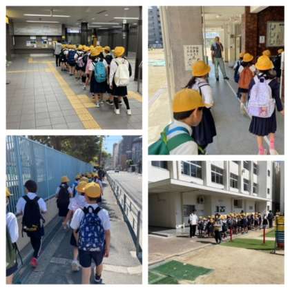 4年生は、ごみ焼却場に社会見学に行きます。ただいま阪神九条駅に到着。これより西淀川区の福駅に向かいます。