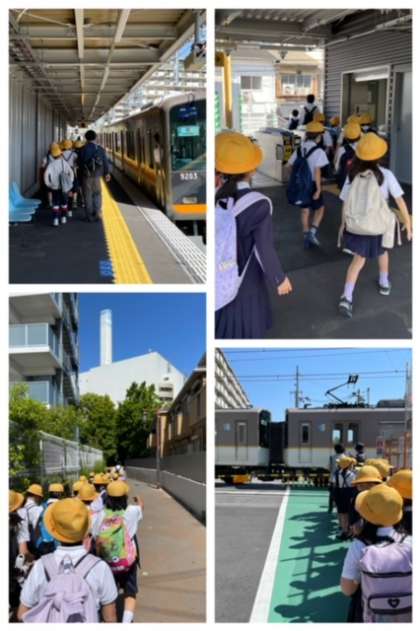 福駅に到着。電車の中では、淀川など川の様子を観察していました。淀川の大きさに驚いている子もいました。
