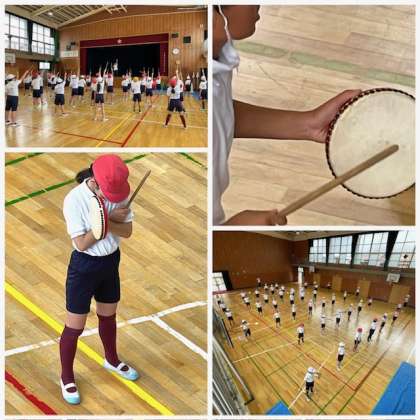 5年生は、講堂で団体演技エイサーの練習をしていました。5年生は、リラックスして良い時と集中しなければならない時の切り替えがしっかりできていて感心です。そのため、動きはこの時期にしてはよく揃っていて、とても上手です。