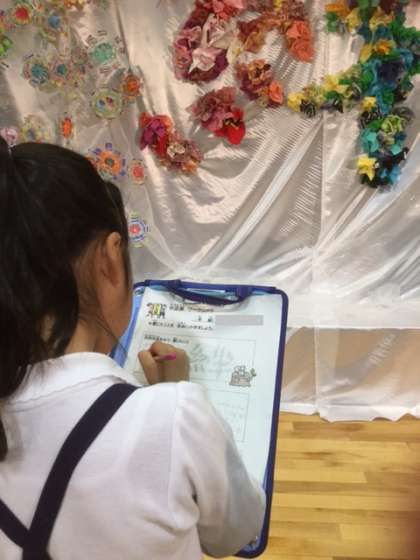 他学年の作品に触れることで、いい刺激となった様子で、次年度以降の意欲もわいてきたようです。「こんなの作ってみたい。」「こんな風に描きたい。」という声が聞かれました。この気持ちをこれからも大切にしてほしいです。