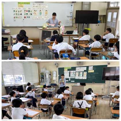 今日のテーマは「野菜」。給食で提供される野菜にはどんな種類があるのか、どんなはたらきがあるかを学びました。