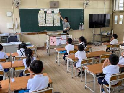 1年生は、初めての栄養指導です。今日はいろいろな食べ物が、赤・黄・緑のどのグループに含まれるのかを学びました。