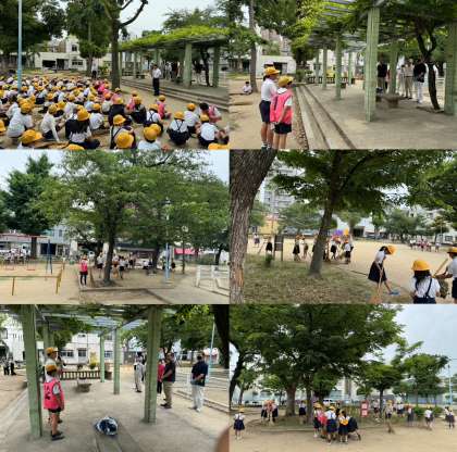 2・4・6年生が地域の皆様と一緒に九条南公園でふれあい公園清掃を行いました。地域の皆様だけでなく、たくさんのPTA運営委員の皆様や、はぐくみネットの皆様、保護者の皆様が参加してくださいました。