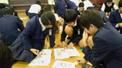 そのあとは、ペアになって地図を使ったゲームをしました。English onlyの約束を守って、どの児童も積極的に活動することができました。