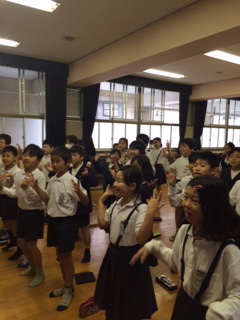 18日水曜日はマヨ先生との楽しい英語の時間です。4年生はみんな楽しみにしています。この日はダンスを踊った後、食べ物の名前のかるたをしました。グループに分かれ、盛り上がって活動できました。