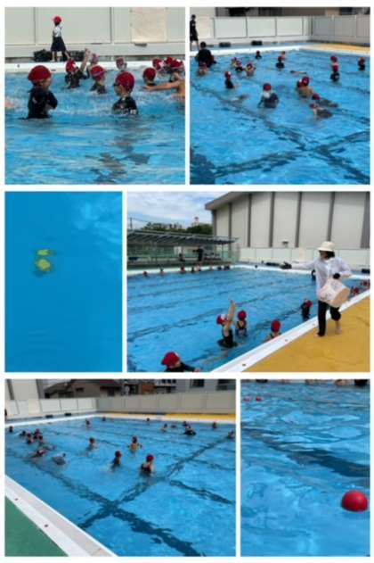 1年生は顔をつけたり浮いたりできるように練習中。最後には宝探しをして、水にしっかりと慣れる活動をしました。