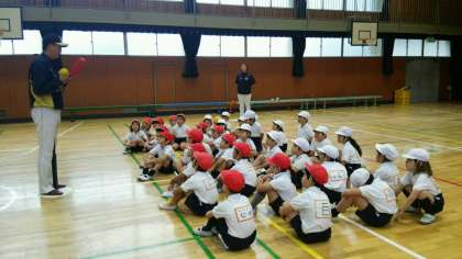 今日はオリックスの方にゲストティ—チャーに来ていただき、ティーボールの試合の仕方を教わりました。