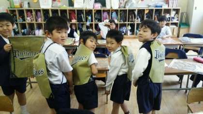 終了後、教室ではいただいた素敵なサイン色紙を「見せて見せて!」と群がり、お土産もいただき満足そうな子どもたちでした。オリックスの先生方今日はありがとうございました!
