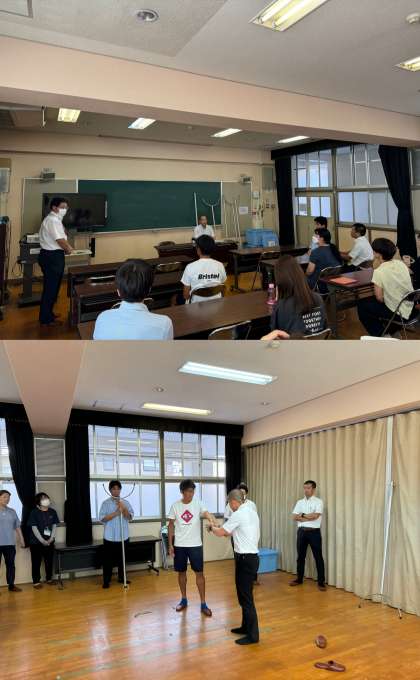 西警察署の方に来ていただき、教職員対象の不審者対応研修を行いました。
