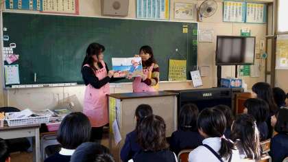 11月の図書ボランティアよもよもさんの朝のお話会を行いました。今月は、2年生の教室で行いました。
