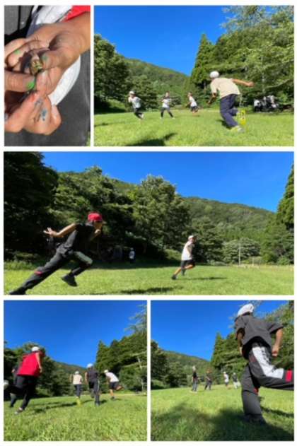 焼き板作りを終えた子どもたちは、草原で鬼ごっこを始めました。暑さは全く気にならないようで、元気に走り回っていました。