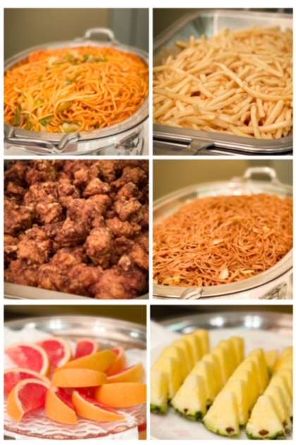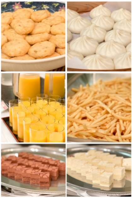 夕食はバイキングです。ボリュームたっぷりのおかずに、サラダやデザート、ジュースなども選べてとても充実していました。