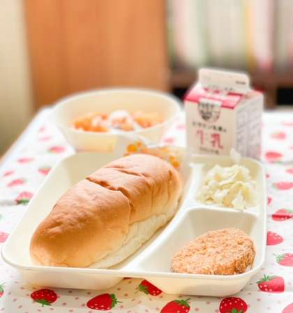 9/13の献立は、コッペパン、チキンレバーカツ、ケチャップ煮、キャベツのバジル風味サラダ、マーマレード、牛乳でした。