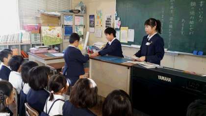 11月に行った読書スタンプラリー。43人の子どもたちが短期間に達成することができました。図書委員による朝の読み聞かせの時間に達成者へは、ブックカバーで作った栞をプレゼントしました。