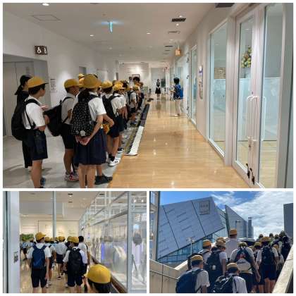 6年生は、ハグミュージアムに「エコクッキング」に行きます。ただいま、ハグミュージアムに到着。料理を通して環境についても学習します。