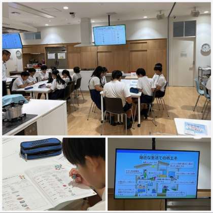調理の前に「環境についての学習」をします。家庭でできるエコな取り組み、子どもたち一人一人が項目に基づいて「自分で取り組めること」、「家庭で取り組めること」について考えます。無理なく続けられそうなエコな取り組み、もうすでに意識して行動している子が多いことに感心しました。