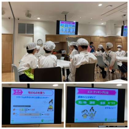 「旬の食材を買う」、「地産地消」、「捨てるところを少なくする」といった工夫がエネルギーの節約に効果があることを学び、野菜の切り方によって調理くずを減らしたり、火を使う時に蓋をすることなどが効果的であることを知りました。