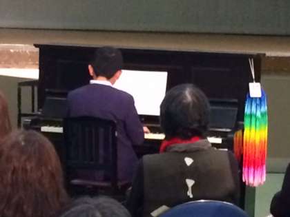 「主よ、人の望みの喜びよ」は優しいピアノの音色の中に平和への強い思いを感じる演奏で、会場のみんなは、静かに聞き入っていました。