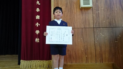 秋の火災予防運動における防火・防災図画コンクールで、本校の児童が入賞しました。本日の全校朝会で賞状が伝達されました。