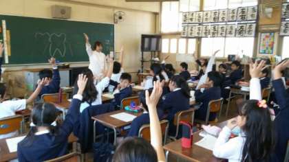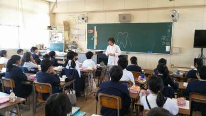5時間目、4年生では歯科衛生士による歯みがき指導(フッ化物塗布)が行われました。