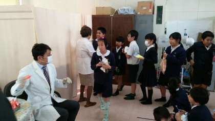 その後、フッ化物塗布についての説明を聞き、歯科衛生士の指導のもときれいに歯みがきをしてから保健室に移動。