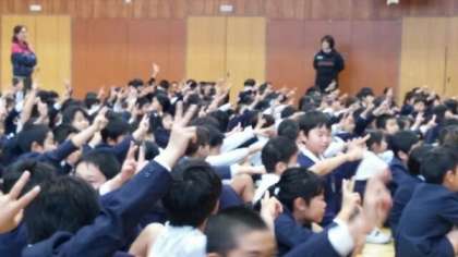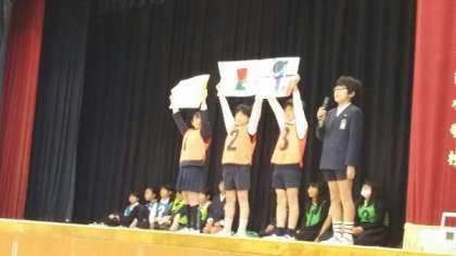 今日は健康委員会による「かぜ・インフルエンザを予防しよう」集会がありました。かぜやインフルエンザを防ぐためにはどうすればいいか、クイズに答えながら一緒に考えました。