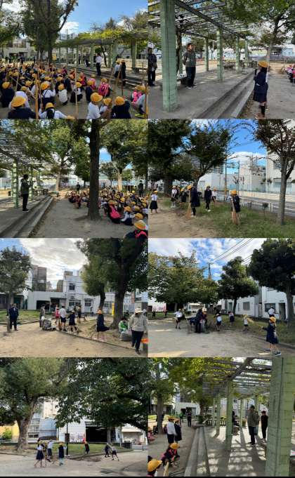 本日、2回目のふれあい公園清掃が行われました。今回は、1・3・5年生が地域の皆様やはぐくみネットの方々、PTA運営委員、保護者の方々と一緒に九条南公園の清掃を行いました。
