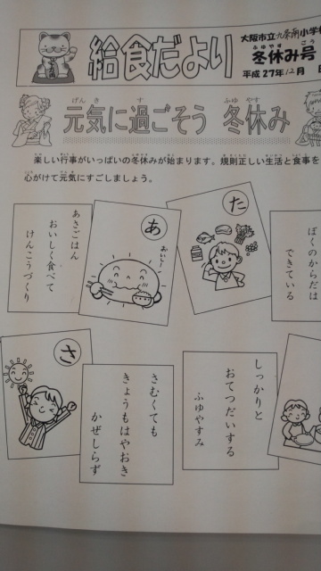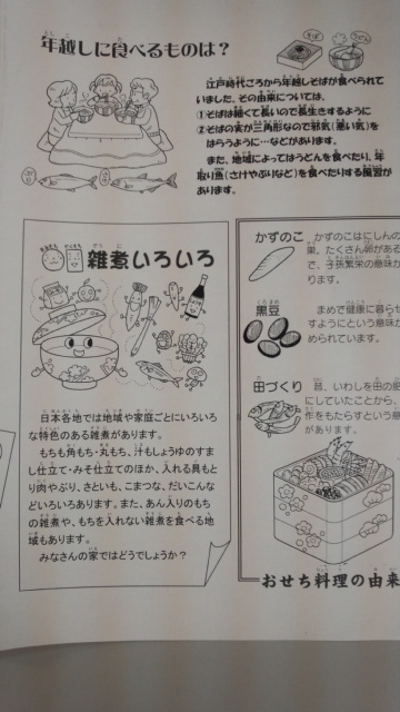 給食だより冬休み号では、年越しそばやおせち料理の由来について掲載しています。