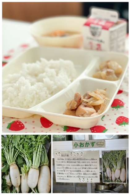 今日の給食には、なにわ伝統野菜のひとつ「田辺大根」が使われています。なにわ伝統野菜は22種類ありますが、そのうち10種類が大阪市原産です。