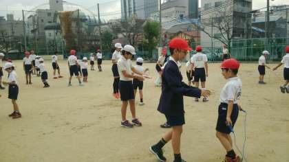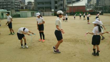1年生と6年生の合同体育「6年生になわとびを教えてもらったよ♪」