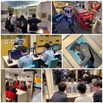 6年生はグループに分かれてキッザニア内のアトラクションを回っています。お仕事の衣装に着替えると、気分が盛りあがります。友だちと一緒に楽しい思い出づくり、小学校生活の思い出として、子どもたちの記憶に強く刻まれそうです。