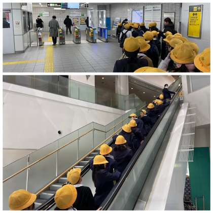 3年生は、住まいのミュージアムに社会見学に来ています。長いエスカレーターに乗り、これより館内を見学します。