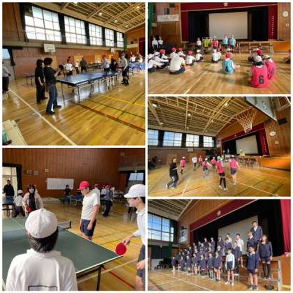 6時間目は、6年生と教職員がバスケットボールや卓球をして交流しました。バスケットボールはなかなかの接戦。大人も本気でプレーしているのですが、さすがは6年生です。