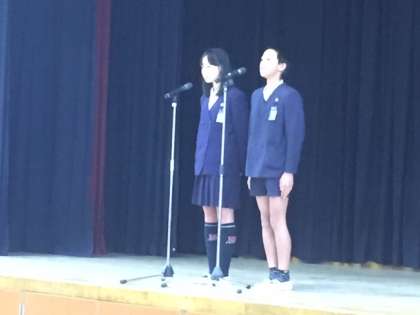 本校では、全校あげて音読に取り組んでいます。毎月一編の詩を校長先生に選んでいただき、暗唱しています。どの学年も頑張って取り組んできました。3学期はその成果を発表するために、児童朝会や児童集会時に音読名人発表会を行うことにしました。トップバッターは6年生。国語で学習した宮沢賢治の「雨にも負けず」を発表しました。二人でまとまりごとに交互に読み、最後の一文は力強く二人で息をそろえて読みました。来週の発表は5年1組です。お楽しみに!