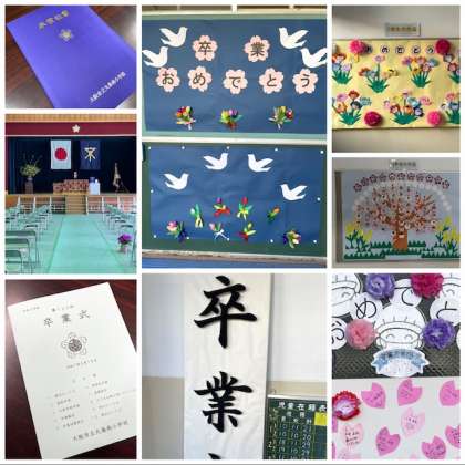 6年生は、いよいよ明日、本校を旅立ちます。今日は教職員と子どもたちが校内清掃や会場設営に取り組みました。校内には、6年生に贈る掲示物もたくさん飾られています。明日は練習の成果を発揮して、堂々とした立派な姿を見せてくれることを期待しています。