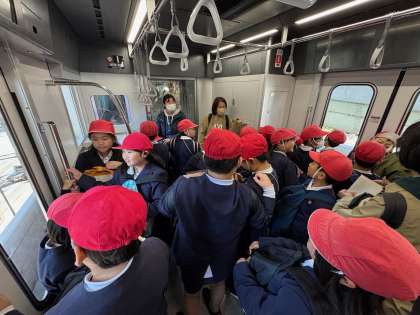 9:51発の子ども優先列車に乗りました。九条駅から15分ほどで夢洲駅に到着します。