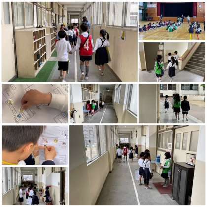 そんな2年生に案内された1年生たちは、とても楽しそうに学校探検の時間を過ごしていました。雨で運動場で遊べない一日でしたが、そんなことが気にならないくらいに楽しい時間を2年生のお兄さん、お姉さんたちからプレゼントしてもらいました。