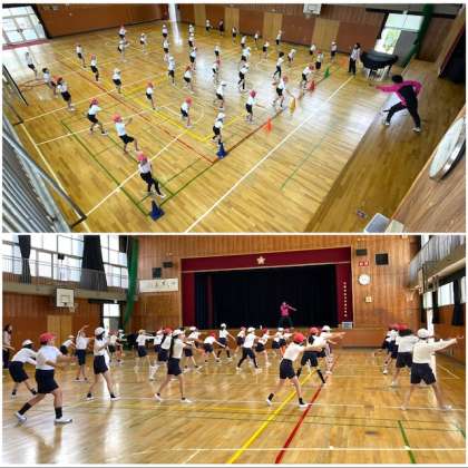5年生は、運動会の団体演技で「ソーラン節」をします。今日の体育は、講堂でさっそく一部の振り付けを練習していました。どの子も集中して練習に励む姿が印象的でした。