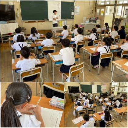1年生は、連絡帳を書く練習を始めています。手紙は丸で囲んだ「て」、宿題は「し」といったマークを使うことや、項目ごとに行を変えることなど、拡大した連絡帳を黒板に掲示しながら丁寧に進めています。