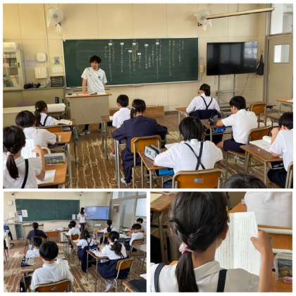5年生が国語の学習をしていました。1組は国語の教材「インターネットは冒険だ」について、2組は「事実か考えたことかを見極める学習」をしていました。