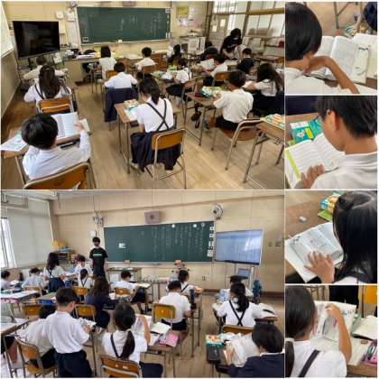 4年生は、国語の時間に「漢字辞典の使い方」の学習をしていました。いろいろな索引を使ってお目当ての感じを探すのは簡単ではありませんが、子どもたちは楽しく辞書を使っていました。インターネットで気軽に色々なことが調べられるようになっていますが、辞書類で調べると、制作の際に監修された内容のものが提示される安心感があります。辞書の使い方にも十分慣れさせておきたいですね。