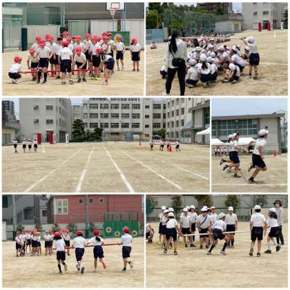 3・4年生は、昨日団体競技の「台風の目」の練習をしました。息を合わせて走らなければならないので、なかなか難しかったです。運動会本番に向けて、仲間と共に上達して、全力を出せるようになってもらいたいです。子どもたちの活躍に、大きな声援をよろしくお願いします。