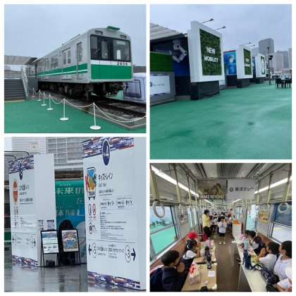 e-Metro Mobility Townのアトラクションは、使わなくなった地下鉄の車両を使って各コーナーが設けられています。いろんな展示を見て回り、子どもたちは今からお弁当を食べるところです。地下鉄車両の中で「いただきます!」