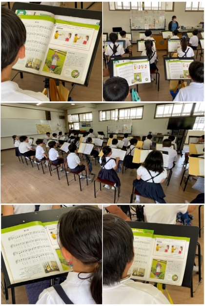 今日も4階から元気な歌声が聞こえてきました。昨日は4年生がとても元気に歌っていたので、今日も4年生かなと思いながら4階に上がってみると、音楽室にいたのは3年生でした。4年生に負けず劣らずの元気いっぱいの歌声が気持ちがいいです。