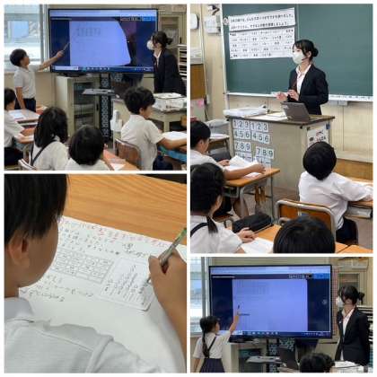 3年生は、算数の時間にグラフや表に整理する学習をしています。3年2組のこの単元の授業は、実習生が進めています。アンケートで調べた子どもたちが好きなスポーツを、どのように整理するとわかりやすいかを話し合い、実際に表やグラフに整理しました。実生活でも役立つ場面がたくさんある学習です。学級会や係活動の場面でも、学んだことを活かして欲しいです。
