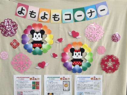 読書ボランティアよもよもの「2月の図書室掲示」にも優しい気持ちを感じるハートがいっぱいです。