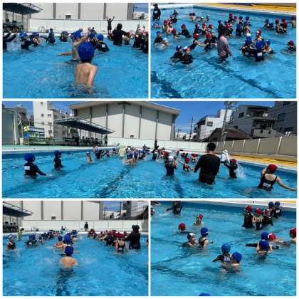 水泳指導は楽しいだけでなく、大きな事故も起こりえます。学校でも安全確認をしっかりと行い、今日もたくさんの教職員がプールに入りましたが、ご家庭でも健康観察をしっかりと行なっていただき、体調がすぐれないときは無理をしないようにしていただければと思います。