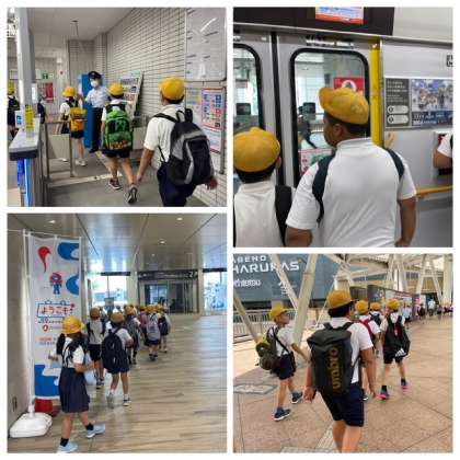3年生は、環状線一周、あべのハルカスへの社会見学に来ています。弁天町から大阪環状線外回りで天王寺まで来ました。今からあべのハルカスの展望台に上がります。