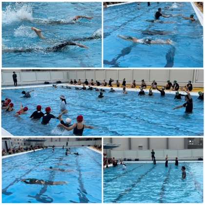 5・6年生は、前回の「けのび、バタ足のポイント」を思い出しながら、今日はクロールの練習もしました。25mを泳ぐ前に、まずは手の動きをしっかり確認して、横方向で練習します。先生たちは子どもたちを何とか泳げるようにしたいと熱意を見せ、気がつけばたくさんの先生方プールに入り、苦手意識を持つ子どもたちの手をとって個別指導をしていました。