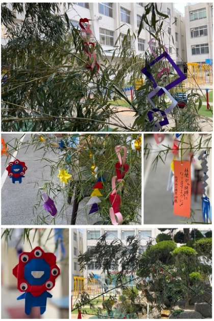 地域の方が、子どもたちのために笹を寄贈してくださりました。正面玄関前と職員室前に笹を置いて、子どもたちが七夕飾りを飾れるようにしています。